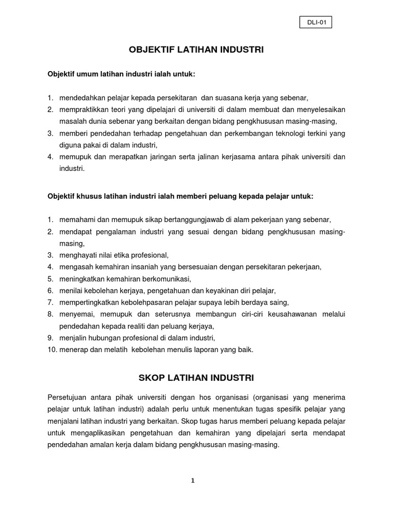 Dl 01 Objektif Dan Skop Latihan Industri Pdf