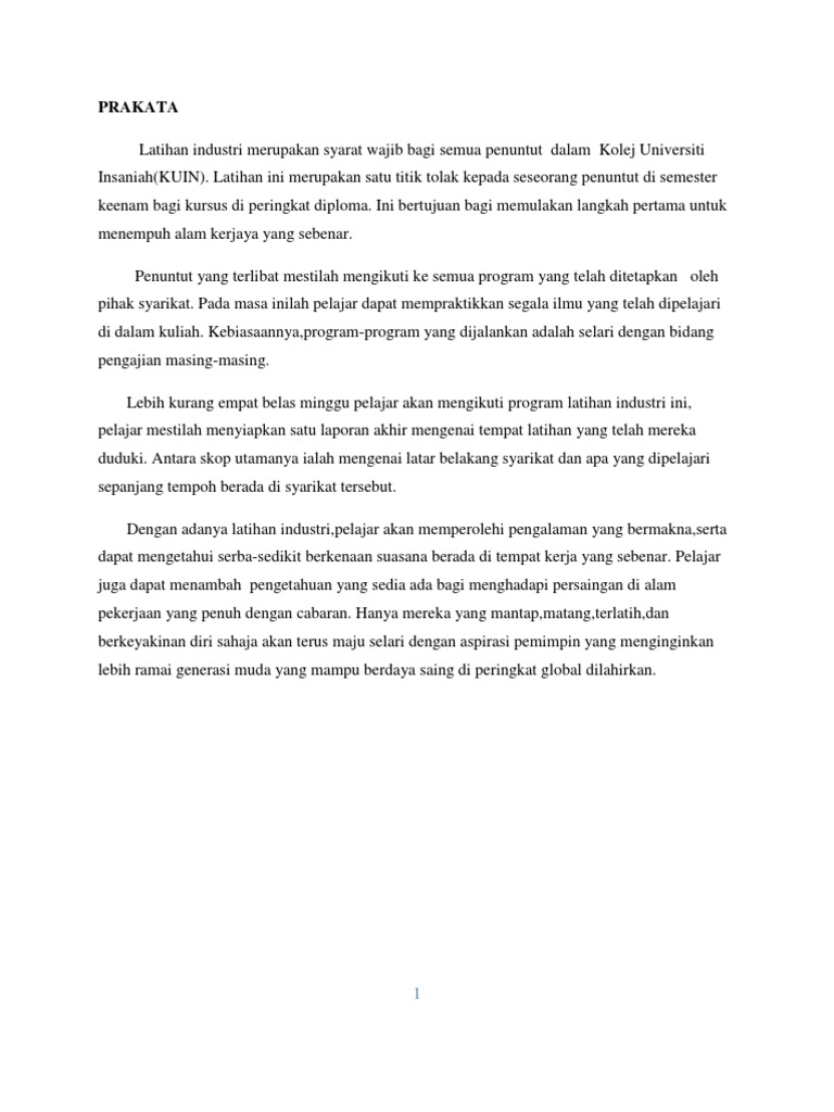 Lepas aku dah bagi tajuk kau kena jadi kreatif dan buat research di Internet sendiri. Sitihajaraishah0211 menerbitkan LAPORAN AKHIR LATIHAN INDUSTRI SITI HAJAR AISHAH BINTI ZAINUDDIN BB180041 pada 2021-09-29. Segala urusan penempatan atau sebarang pertanyaan boleh berhubung terus dengan Cik Nony di talian 03-8011 9405 Ditulis Oleh.